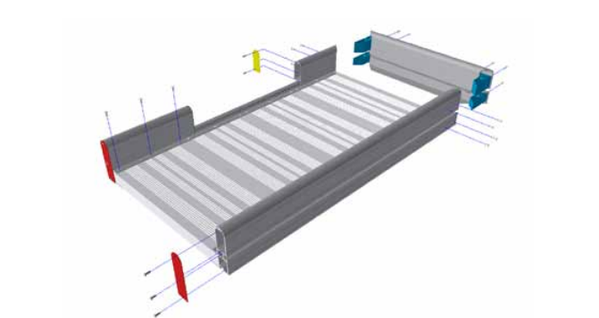 Med denna profil kan man enkelt bygga den gångbana eller plattform man önskar med golv av SFG 250/40. Profilen är även anpassad med spår för infästning av vårt Industriräcke och underliggande konstruktion samt skruvfickor för montering av täcklock. Aluminiumprofilerna kapas till önskade mått och i hörnen monteras stabila hörnvinklar. Gångbanan sammanfogas sedan genom nitning.