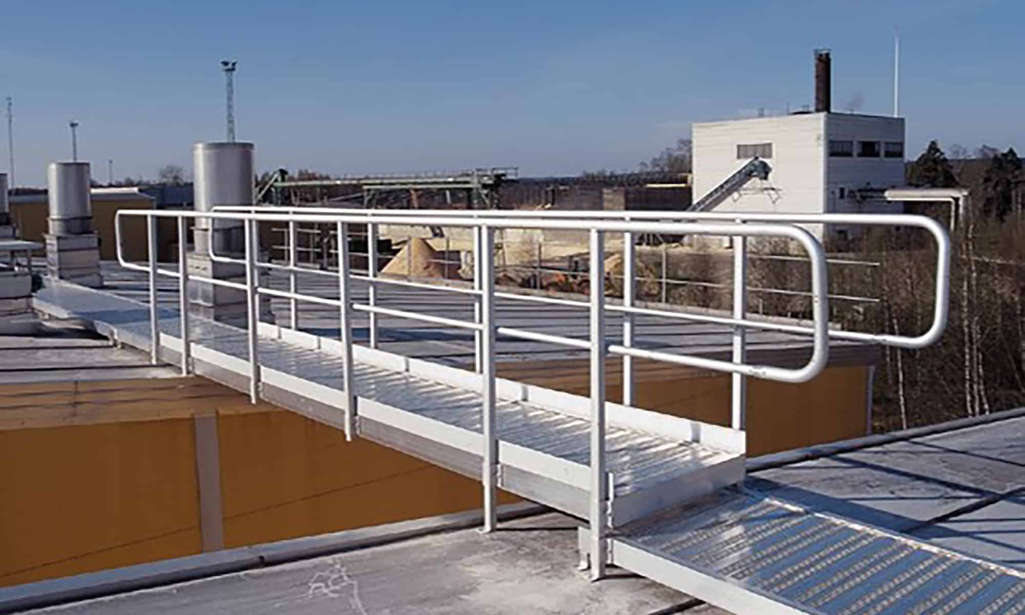 Med en inbyggd sparklist och spår för räcket underlättas montaget i flera steg. Gångbanorna levereras som komplett enhet enligt kundens önskemål om storlek och utseendet. Tack vare att gångbanorna är tillverkade helt i aluminium krävs nästintill inget underhåll under produktens livslängd.