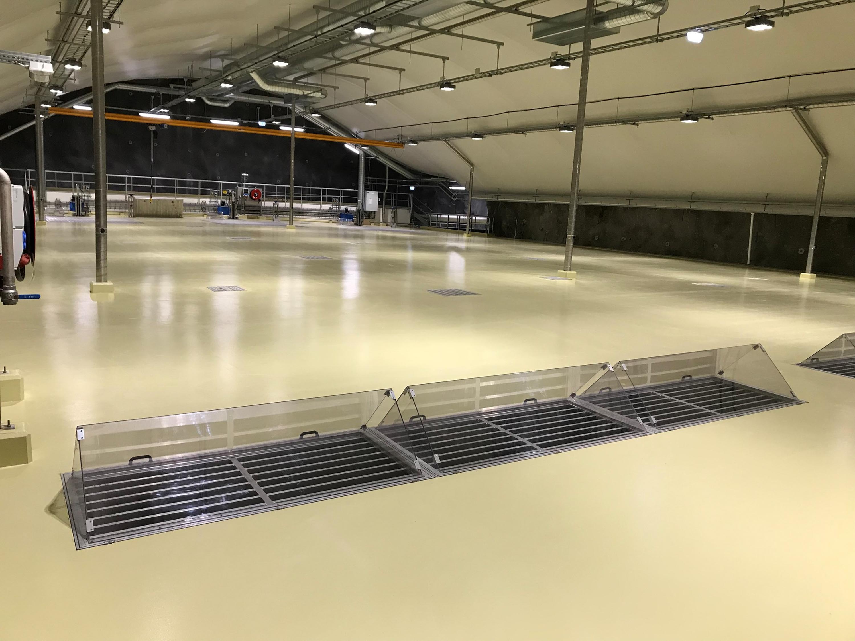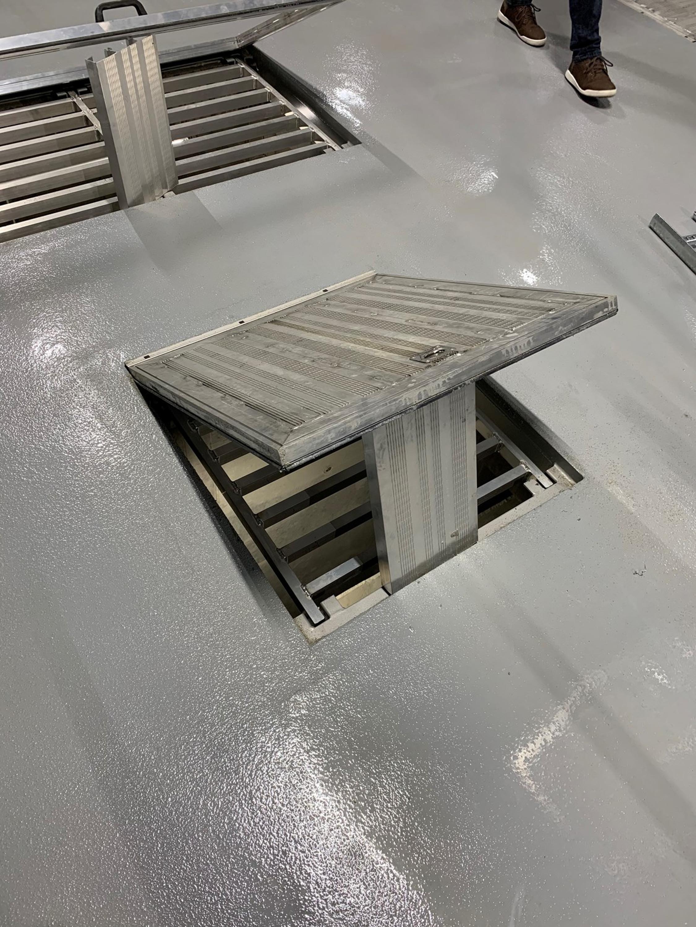 SAPA Golvsystems luckor för ingjutning i betongbjälklag, tack vare ställskruvar anpassas luckans höjd till samma nivå som det färdiga golvet. Alla luckor levereras med skyddslackerad ram som standard. Tack vare infällda handtag och gångjärn blir luckan helt plan för att undvika snubbelrisk.